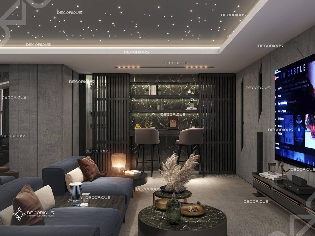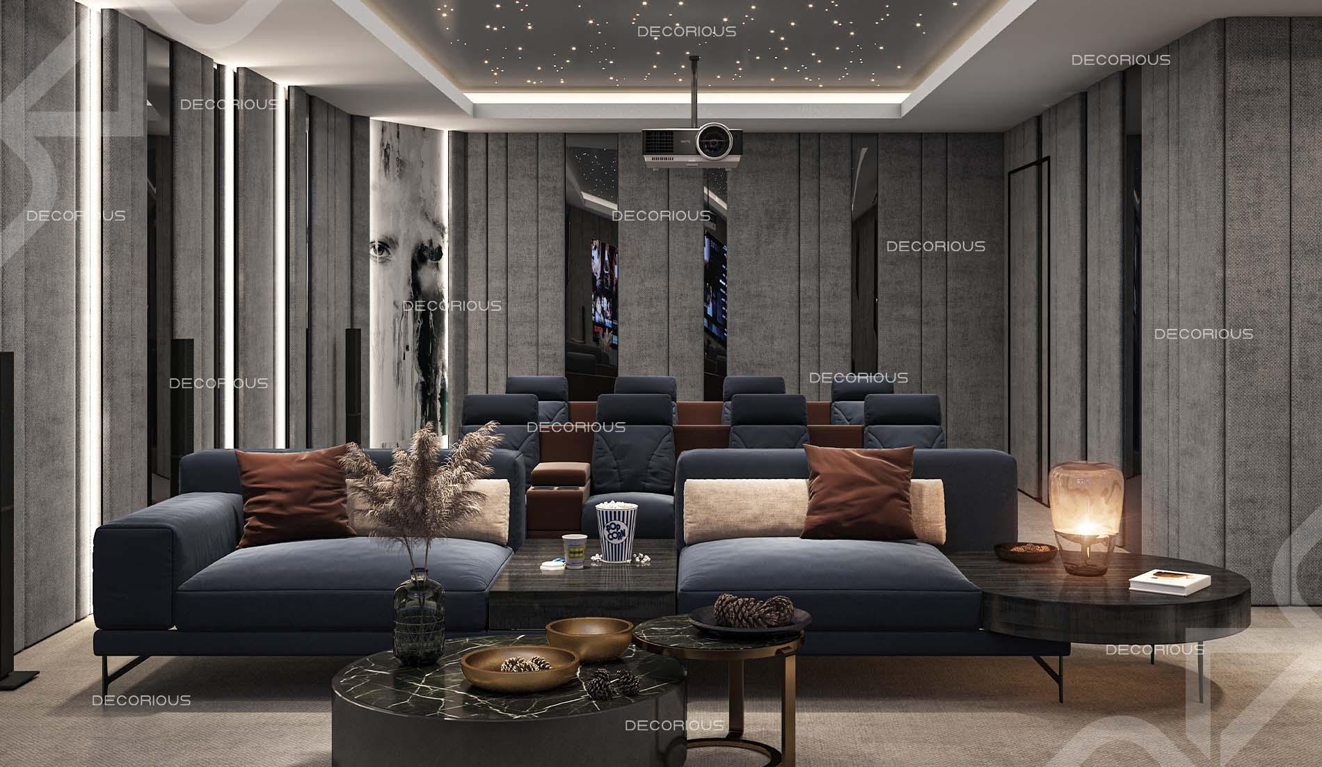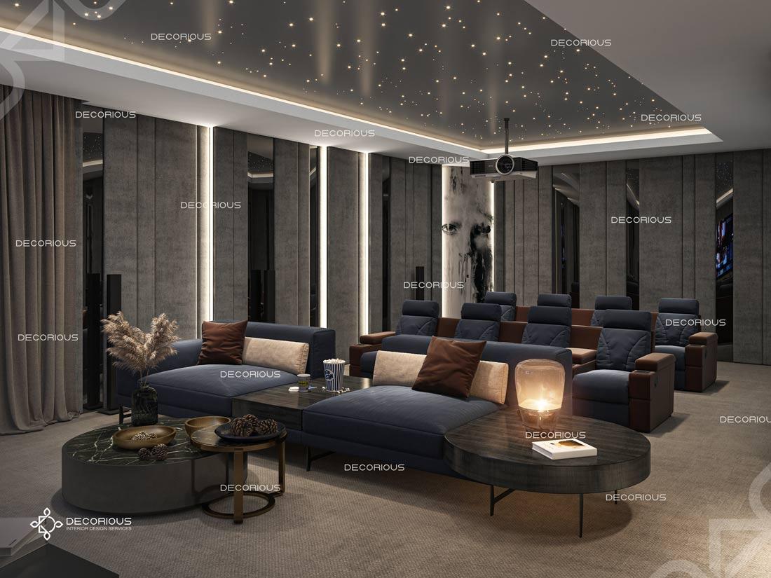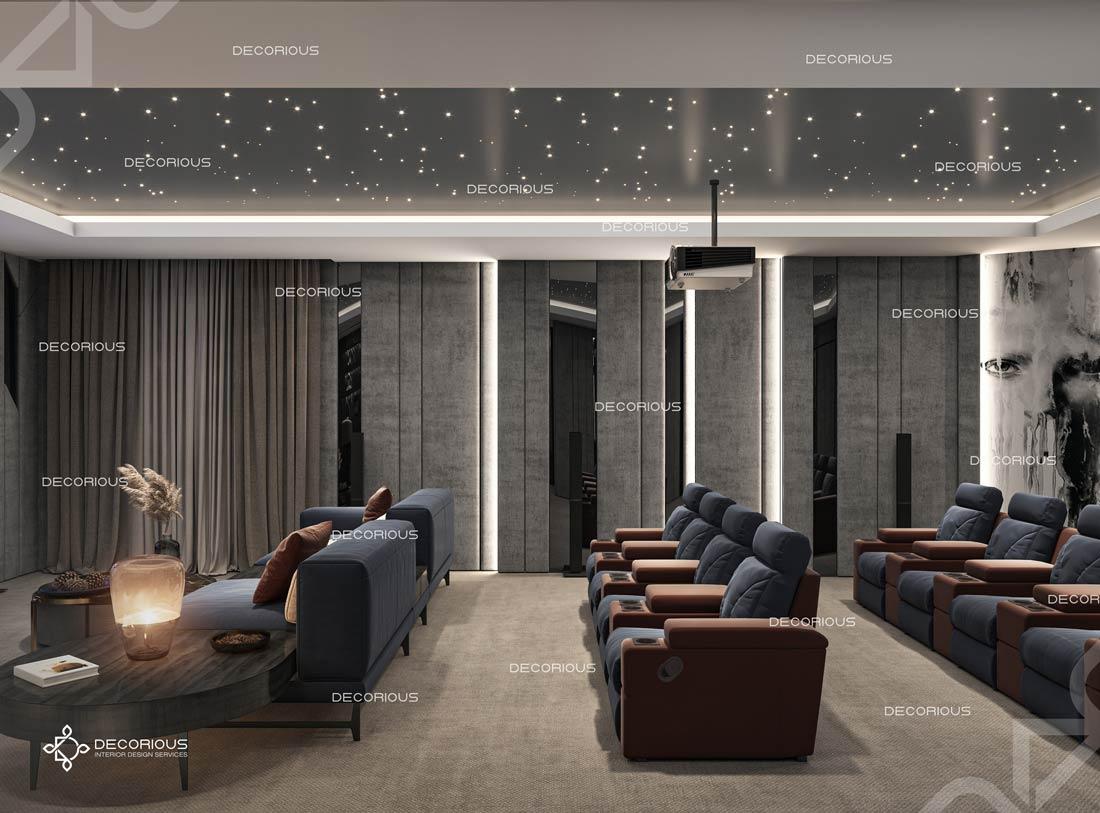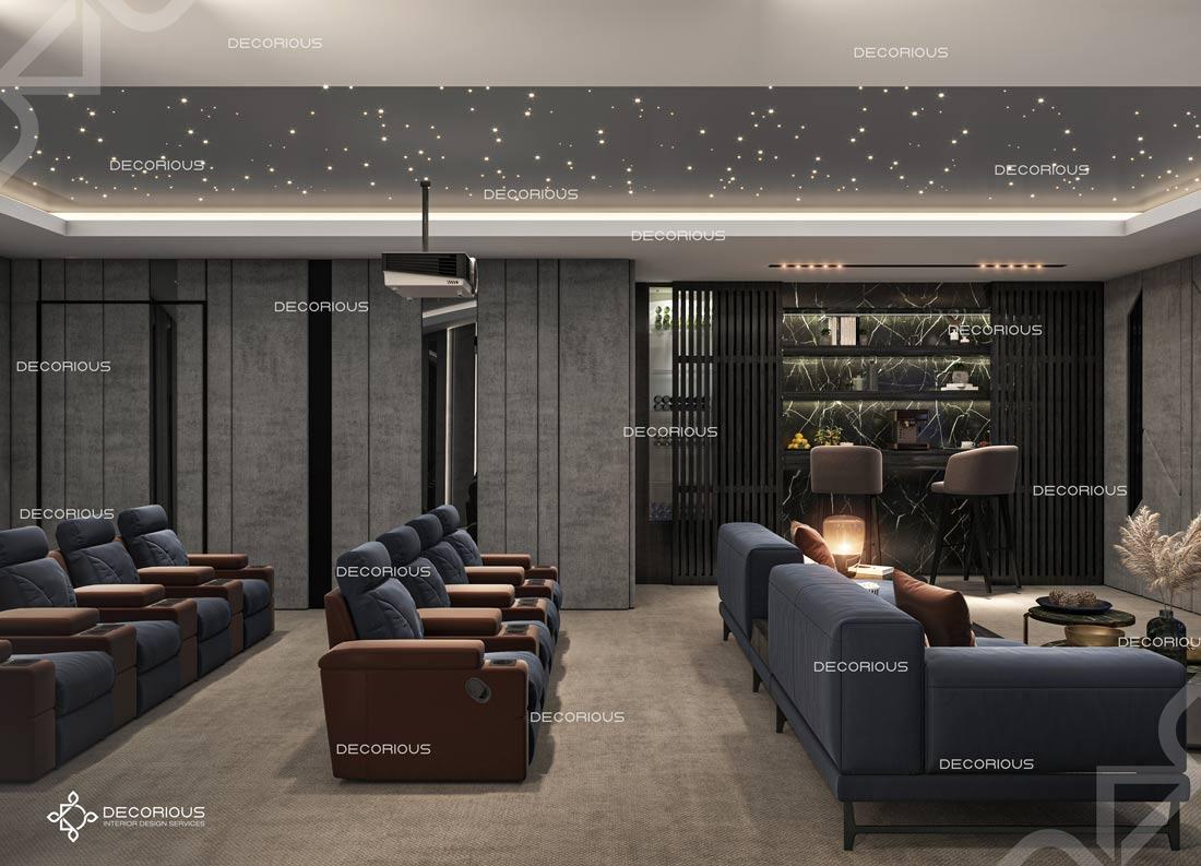 يضمن فريقنا دائماً تنفيذ العمل بشكل سلس ودون متاعب وبتكلفة معقولة، لتكون النتيجة جميلة وتظهر جمال التصميم الداخلي للسينما المنزلية الرائج حالياً. عند العمل على تصميم داخلي فاخر للسينما المنزلية في دبي، يلتزم المصممون الداخليون لدينا بأعلى المعايير دائماً. احصل على استشارة مجانية اليوم.