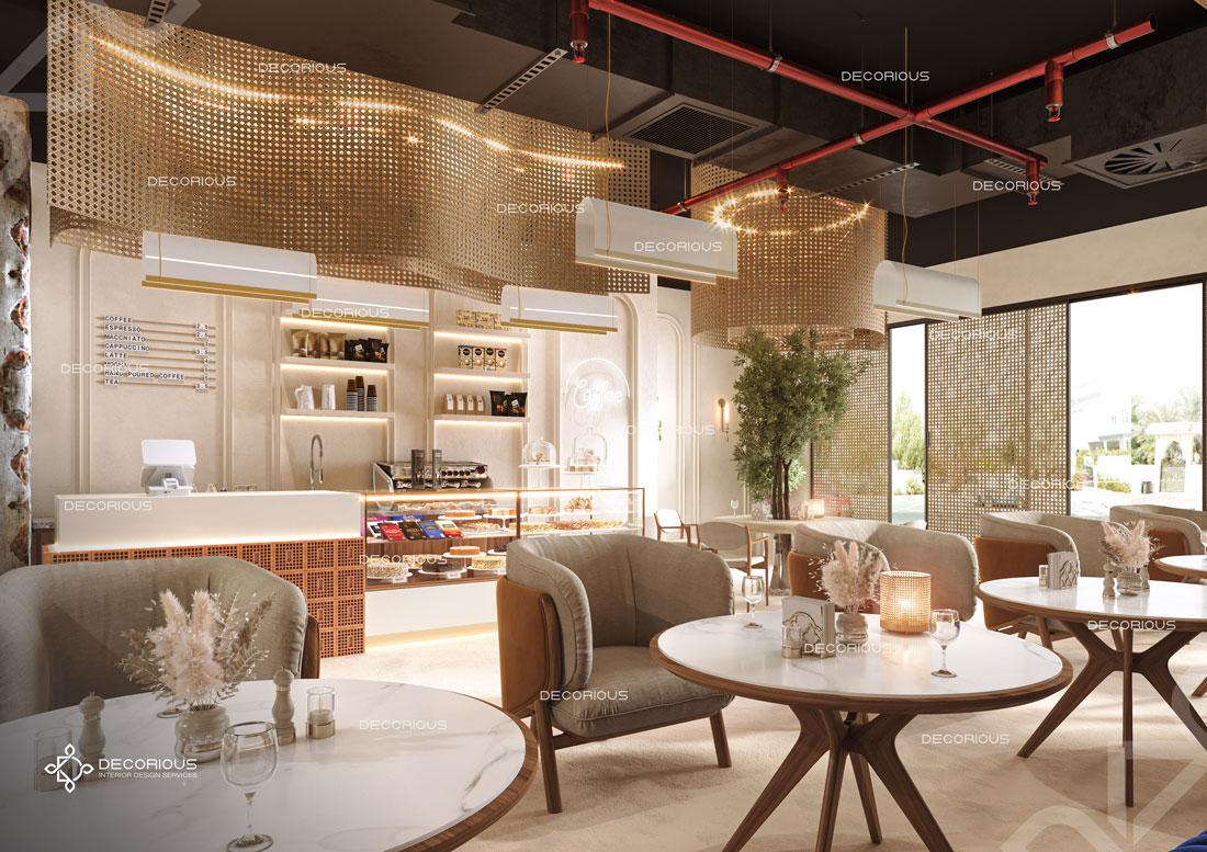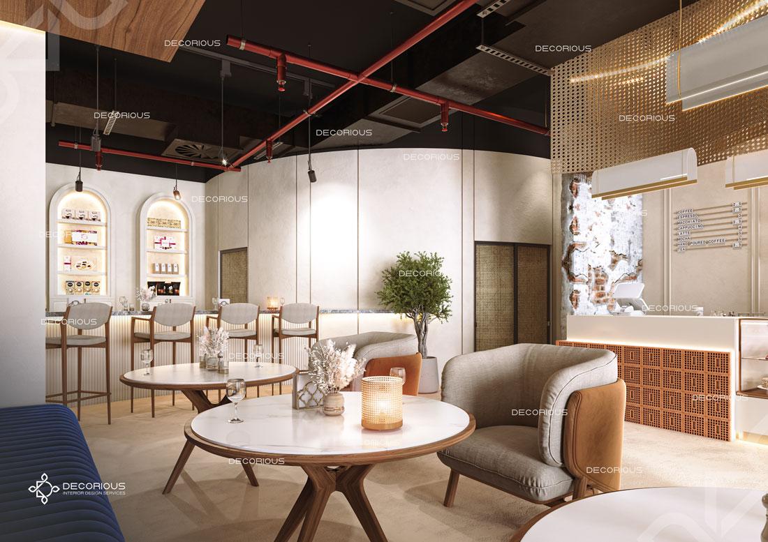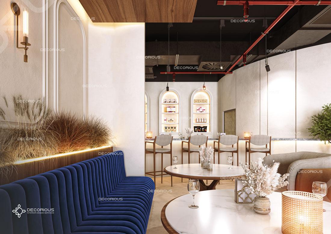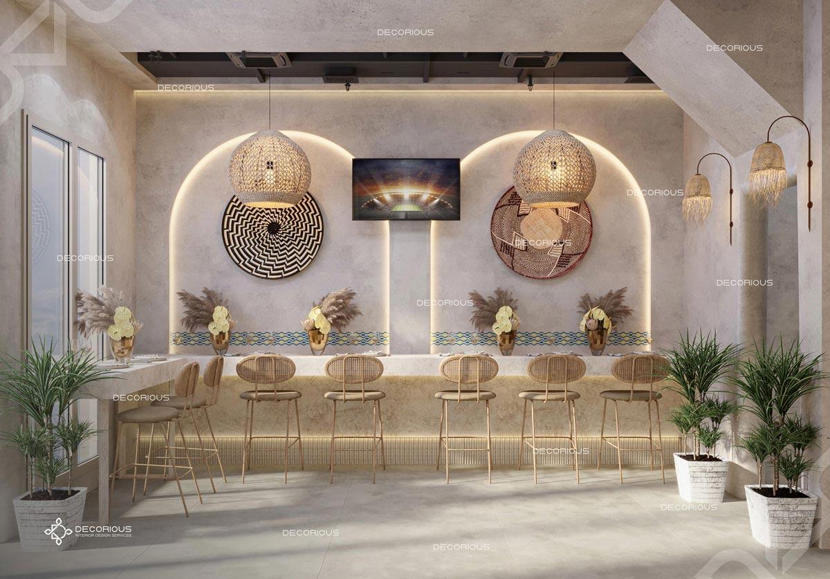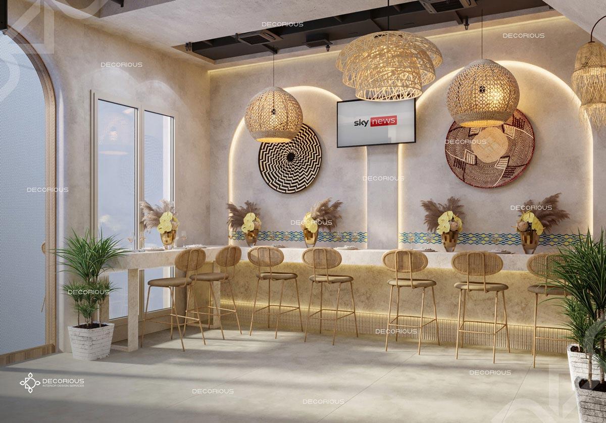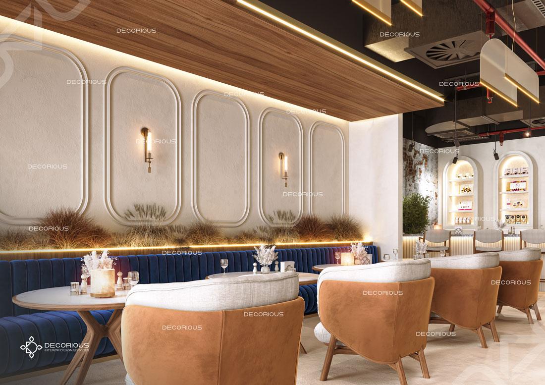 يقوم فريقنا للتصميم الداخلي للمطاعم في دبي باختيار الألوان ونوع الإضاءة وغيرها من عناصر التصميم لإنشاء مساحات تعكس علامتك التجارية الفريدة. تتخصص ديكوريوس بالتصميم الداخلي للمطاعم والمقاهي والصالات والكافتيريات وغيرها من تصاميم الضيافة.