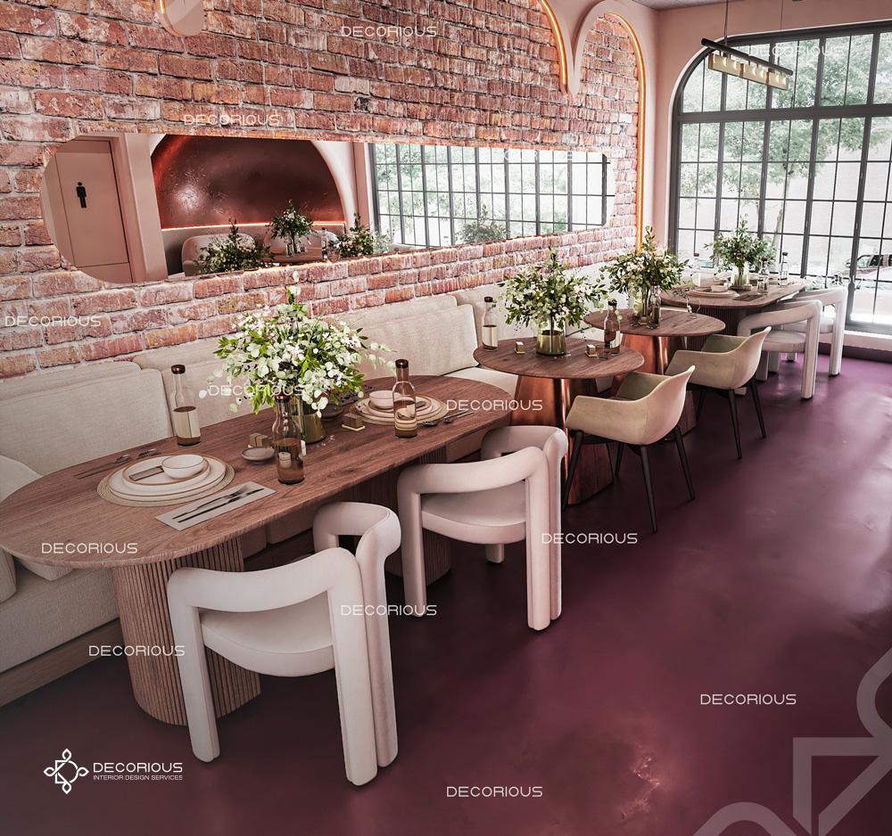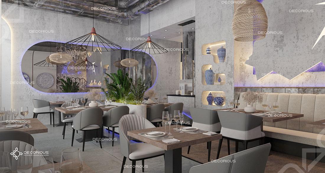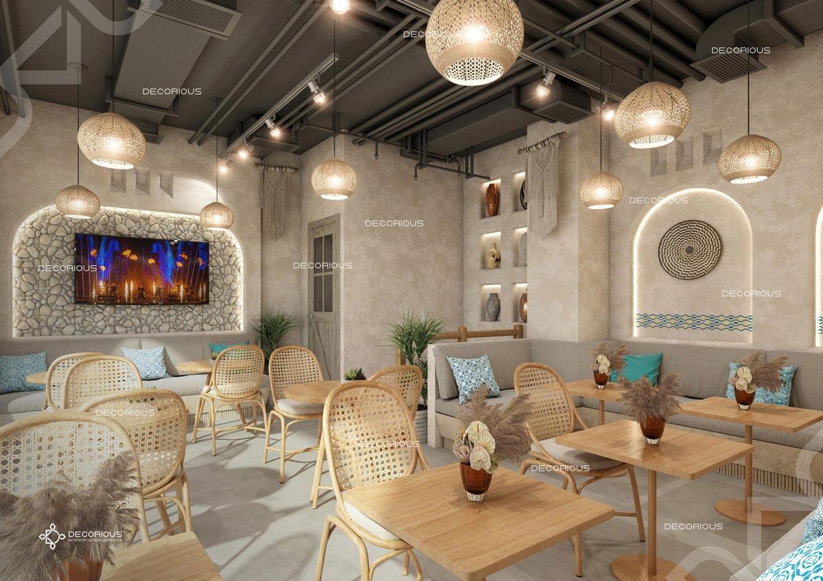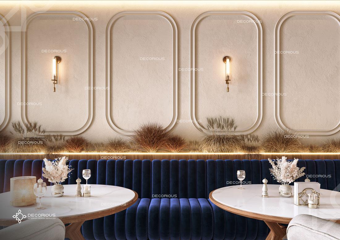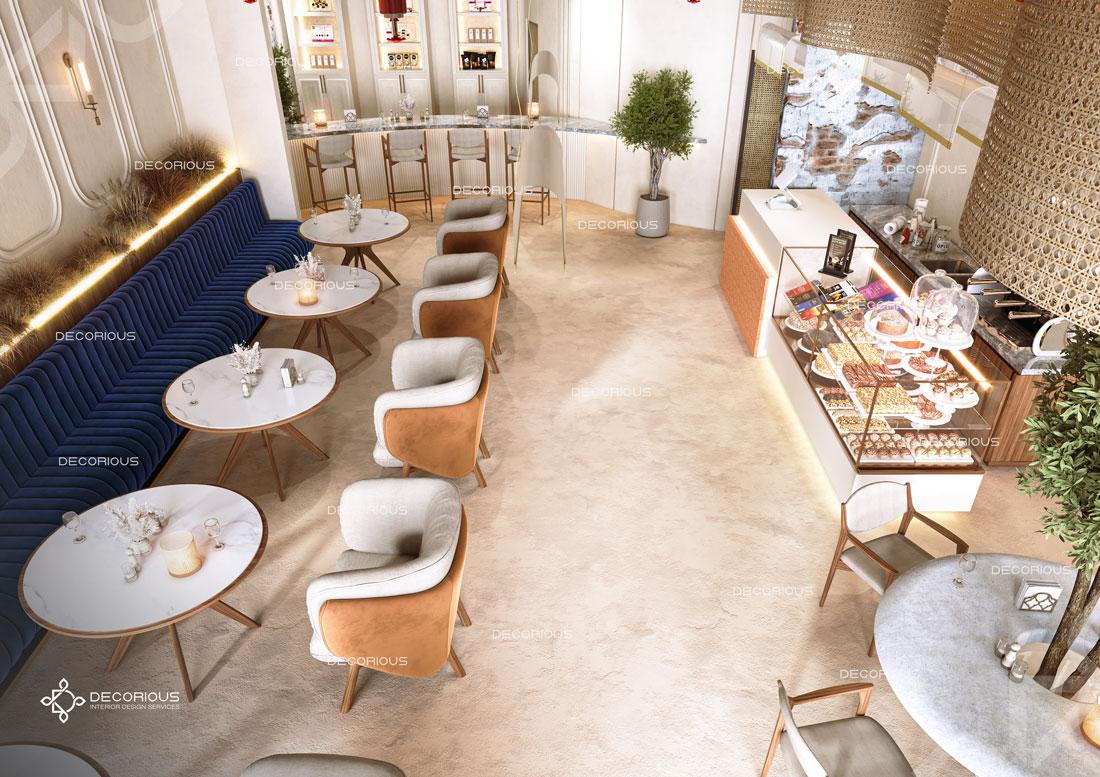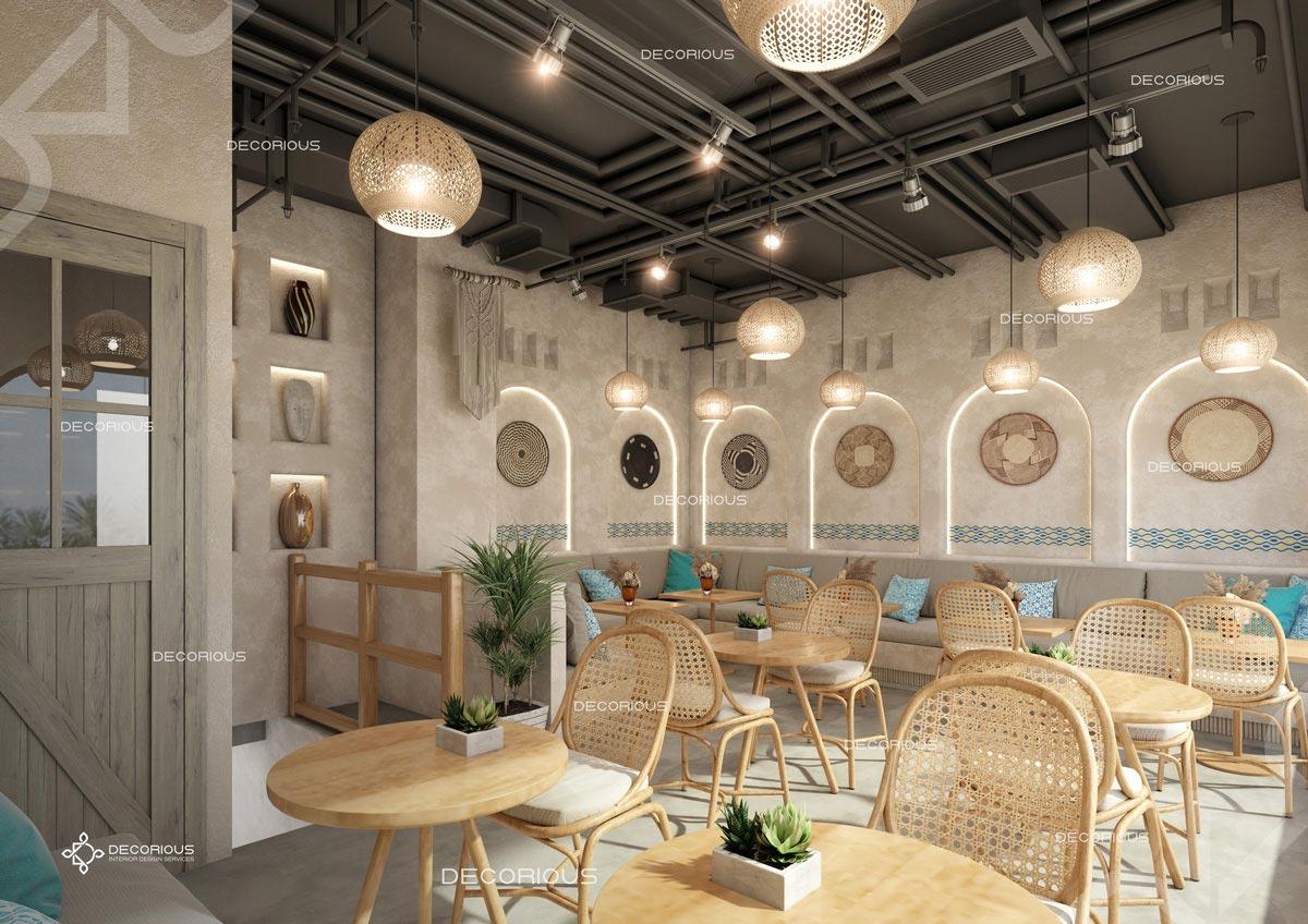 يقوم فريقنا للتصميم الداخلي للمطاعم في دبي باختيار الألوان ونوع الإضاءة وغيرها من عناصر التصميم لإنشاء مساحات تعكس علامتك التجارية الفريدة. تتخصص ديكوريوس بالتصميم الداخلي للمطاعم والمقاهي والصالات والكافتيريات وغيرها من تصاميم الضيافة.
