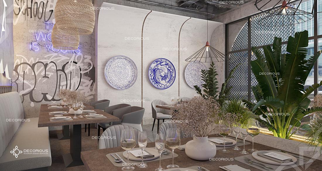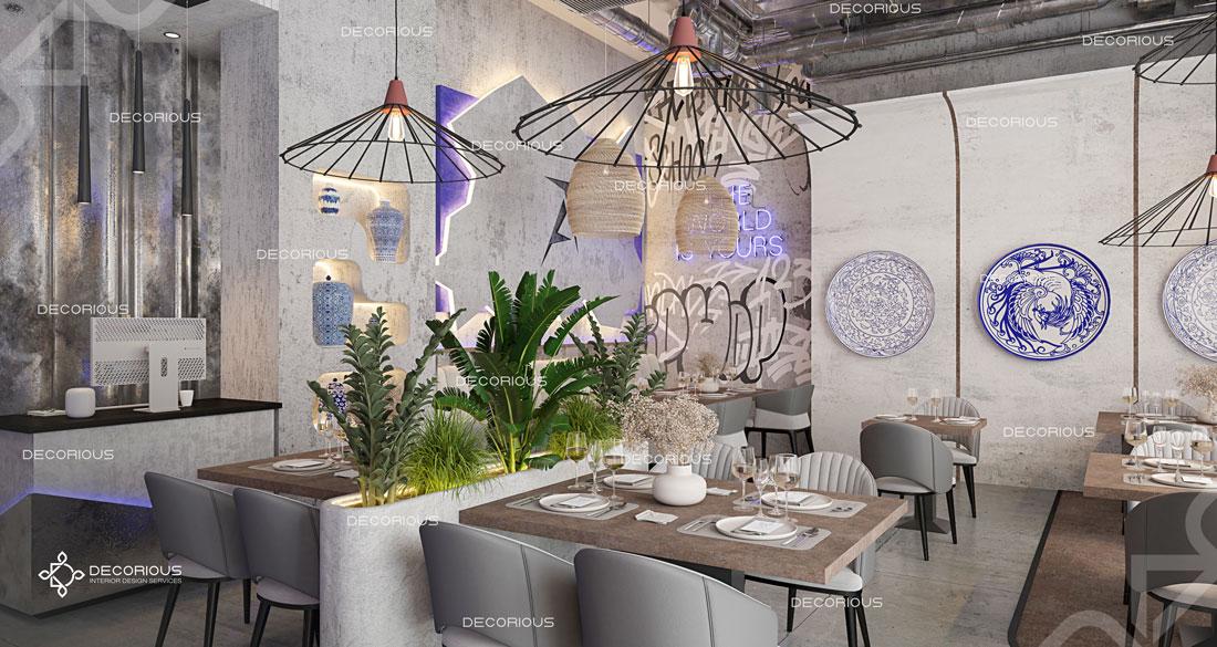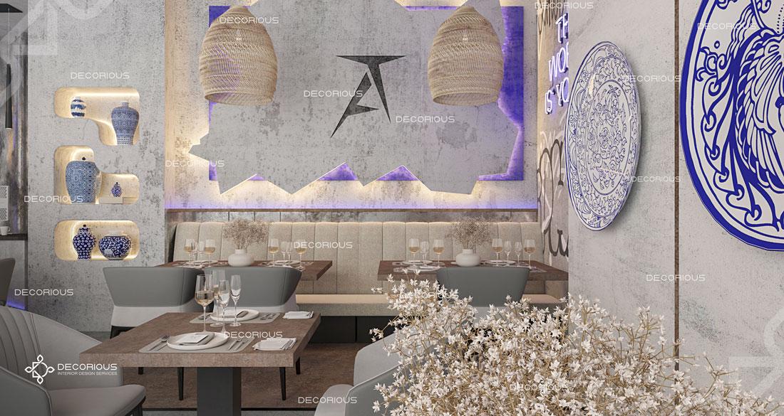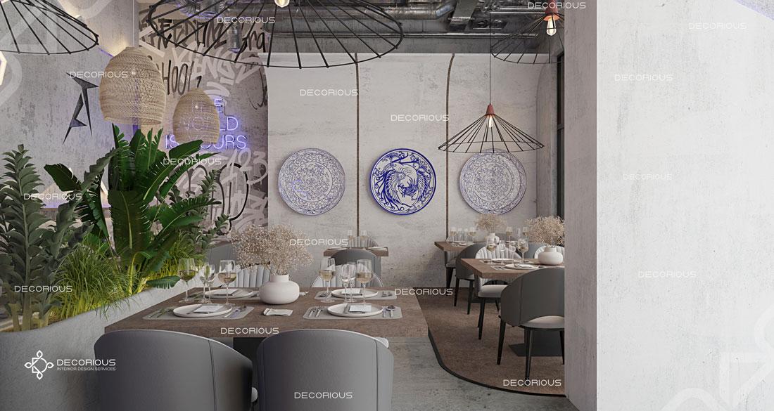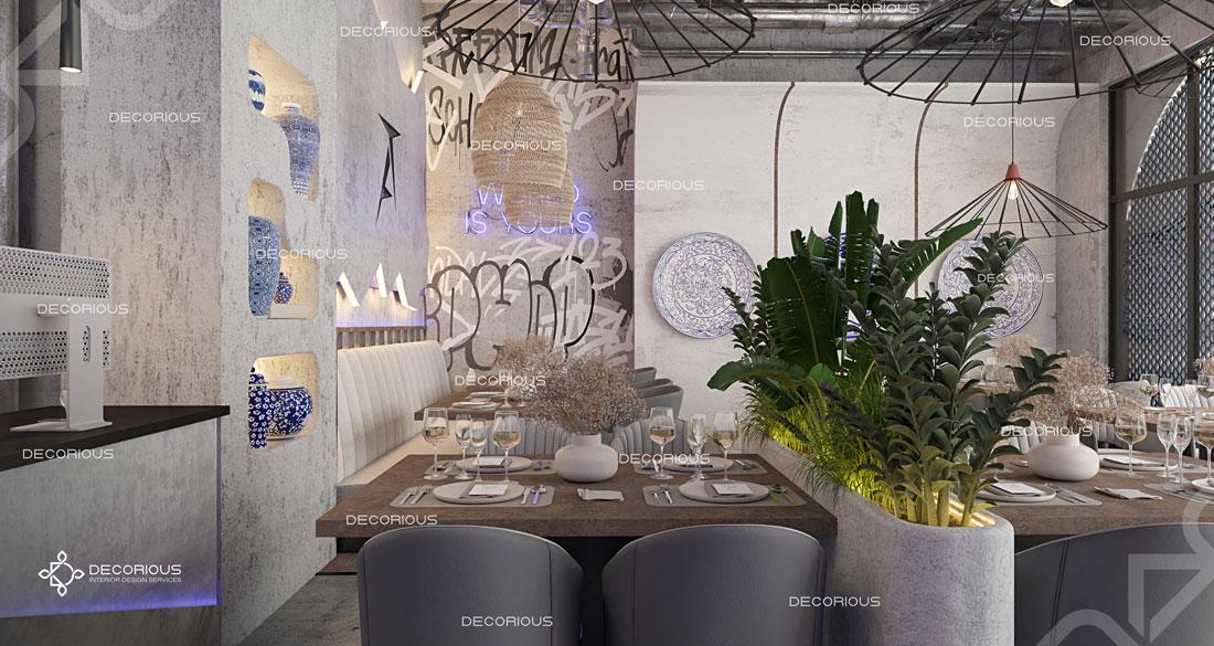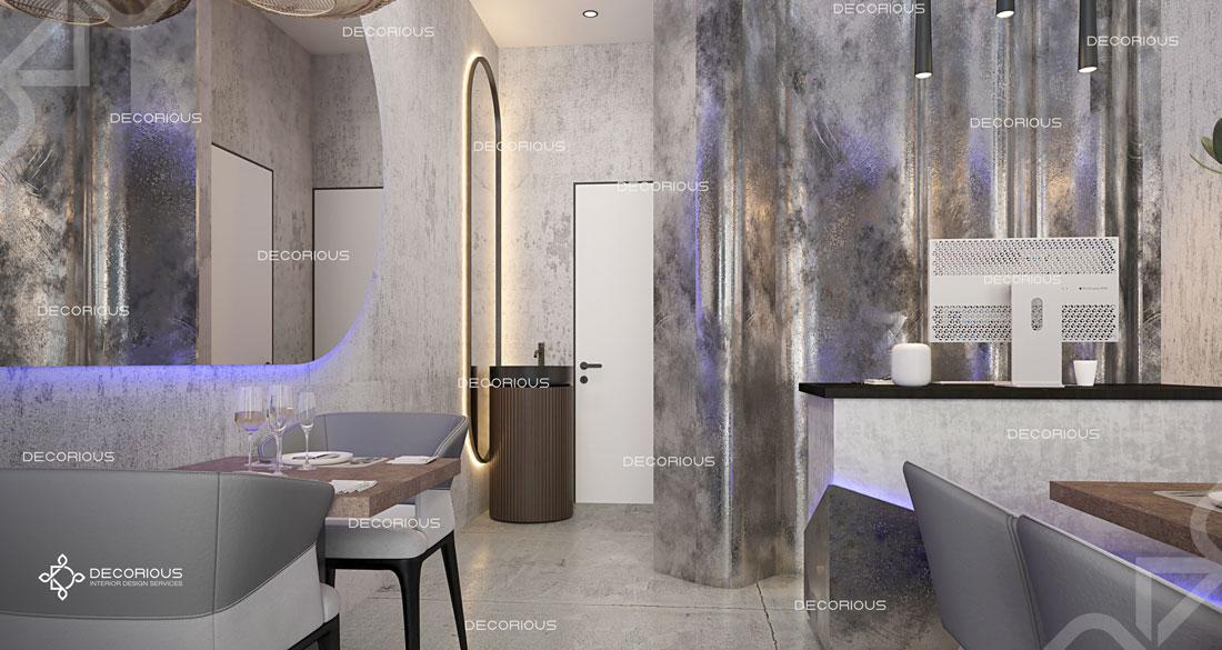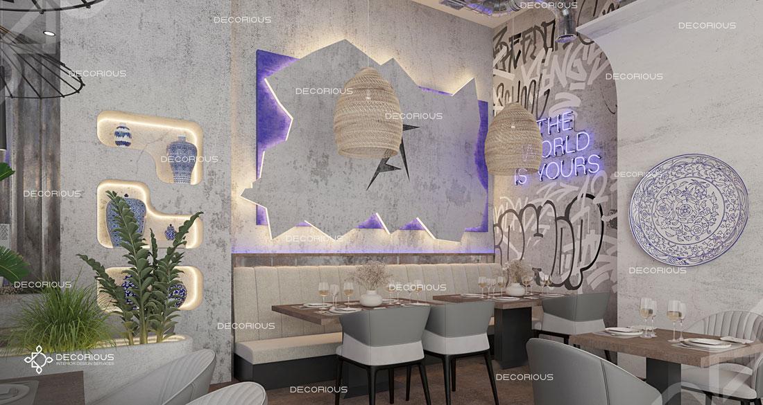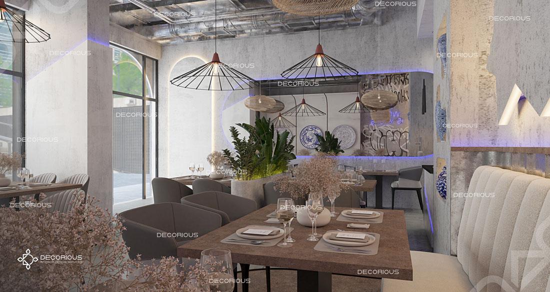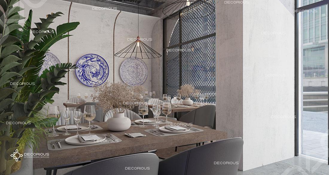 يقوم فريقنا للتصميم الداخلي للمطاعم في دبي باختيار الألوان ونوع الإضاءة وغيرها من عناصر التصميم لإنشاء مساحات تعكس علامتك التجارية الفريدة. تتخصص ديكوريوس بالتصميم الداخلي للمطاعم والمقاهي والصالات والكافتيريات وغيرها من تصاميم الضيافة.