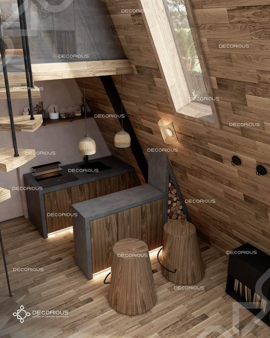 The warm, inviting, and cozy interiors we create at Decorious Interior Design are our area of expertise and ideally match the rustic appeal of cabin homes. Our experts recognize the special allure of cabin living and the need for a harmonious fusion of comfort and nature. To create interiors that reflect your individual style and capture the essence of cabin living, our expert team of interior designers fuses warm color palettes, natural elements, and comfortable furnishings.
