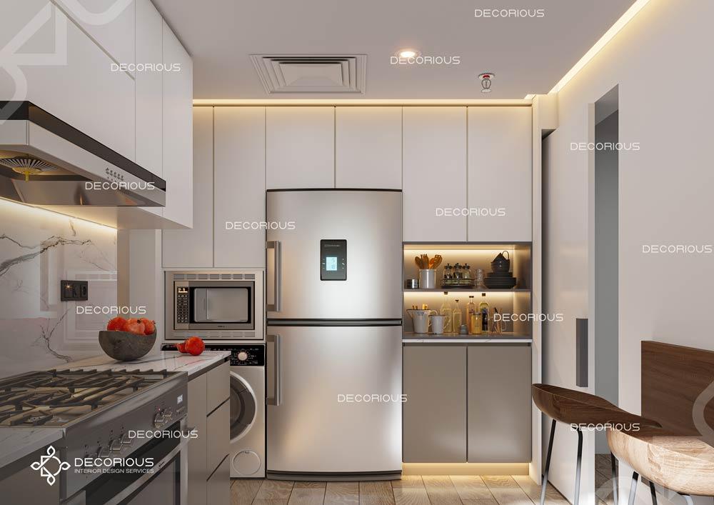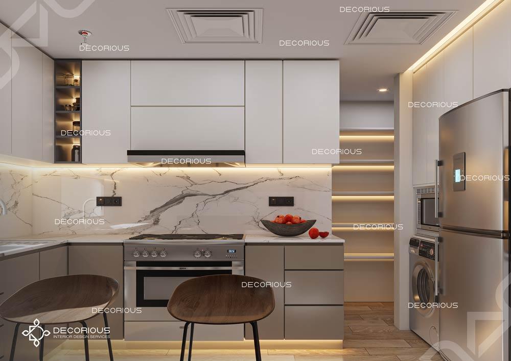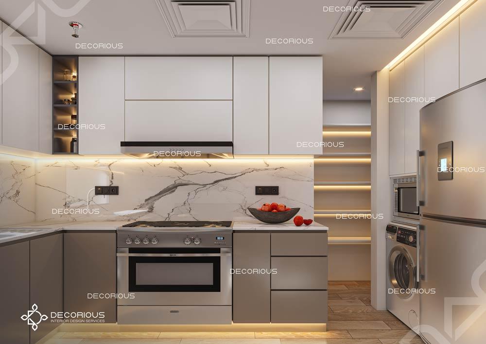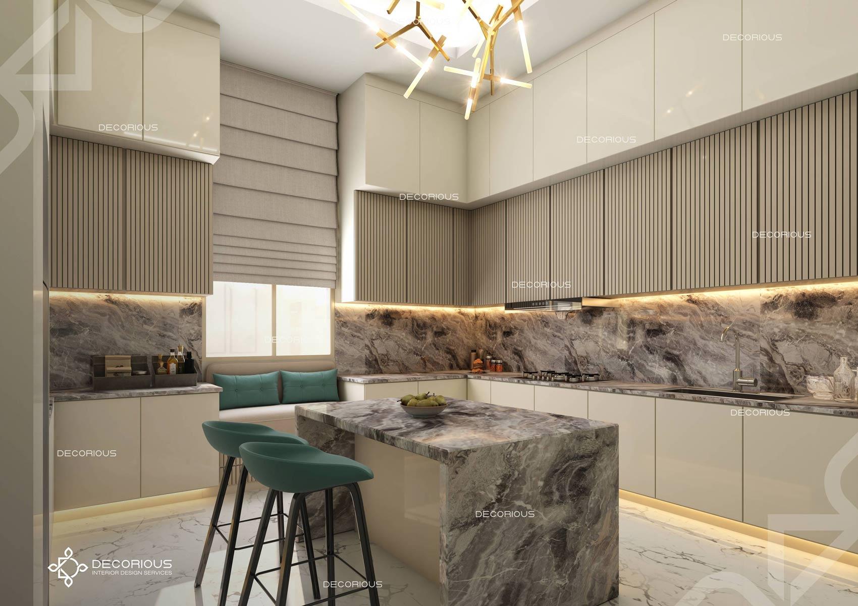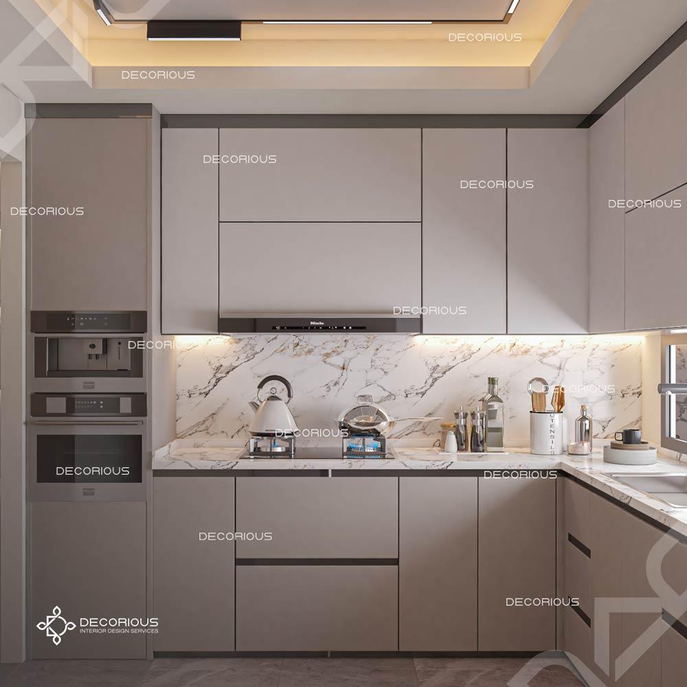 A luxury-looking kitchen can be created using colors like cream and beige. If you have a modern kitchen, you can use dark colors like blacks and greys to make it look extravagant. White reflects light and makes the space appear larger, so pair it with some wood and metallic highlights.